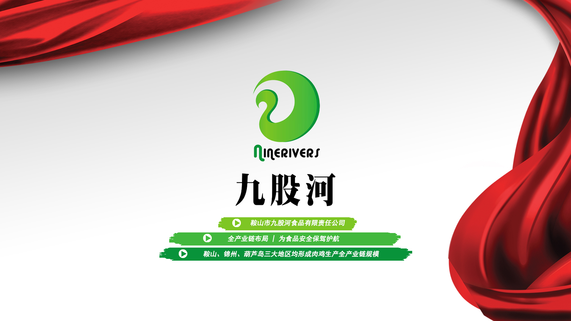 1997年丨九股河誕生于遼寧臺安,成立臺安縣九股河農業(yè)發(fā)展有限公司2003年丨九股河走進錦州市,在凌海成立凌海九股河食品有限公司2008年丨成立凌海九股河飼料有限公司2010年丨九股河與禾豐合作后,成立鞍山市九股河食品有限責任公司,從此,禾豐九股河走進了高速發(fā)展之路2011年丨繼續(xù)在遼西闊步,成立葫蘆島九股河食品有限公司同年,臺安縣九股河農業(yè)發(fā)展有限公司養(yǎng)殖部成立,按下規(guī)?;\養(yǎng)小區(qū)建設的快進鍵2